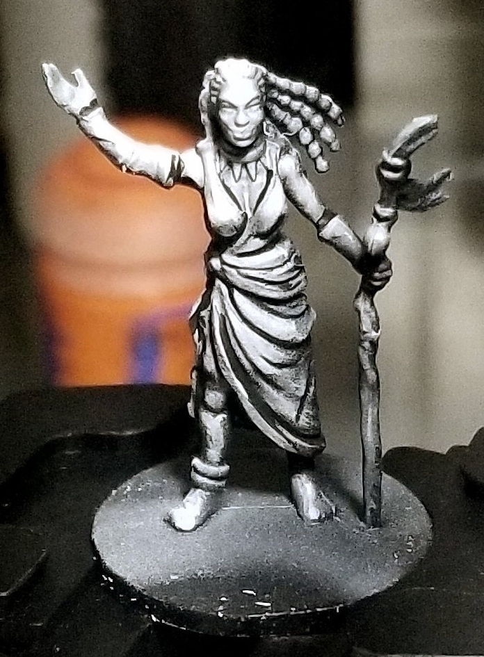 Where the OSL piece was pretty much just for the fun and experience of the process. Sketching and black lining the models in preparation for a project is a skill that needs to be developed and worked on over time, and it’s one that I don’t use enough. The creases on this shaman’s dress and the lines of her dreads gave a pretty straight forward guide of where to highlight and line with black.